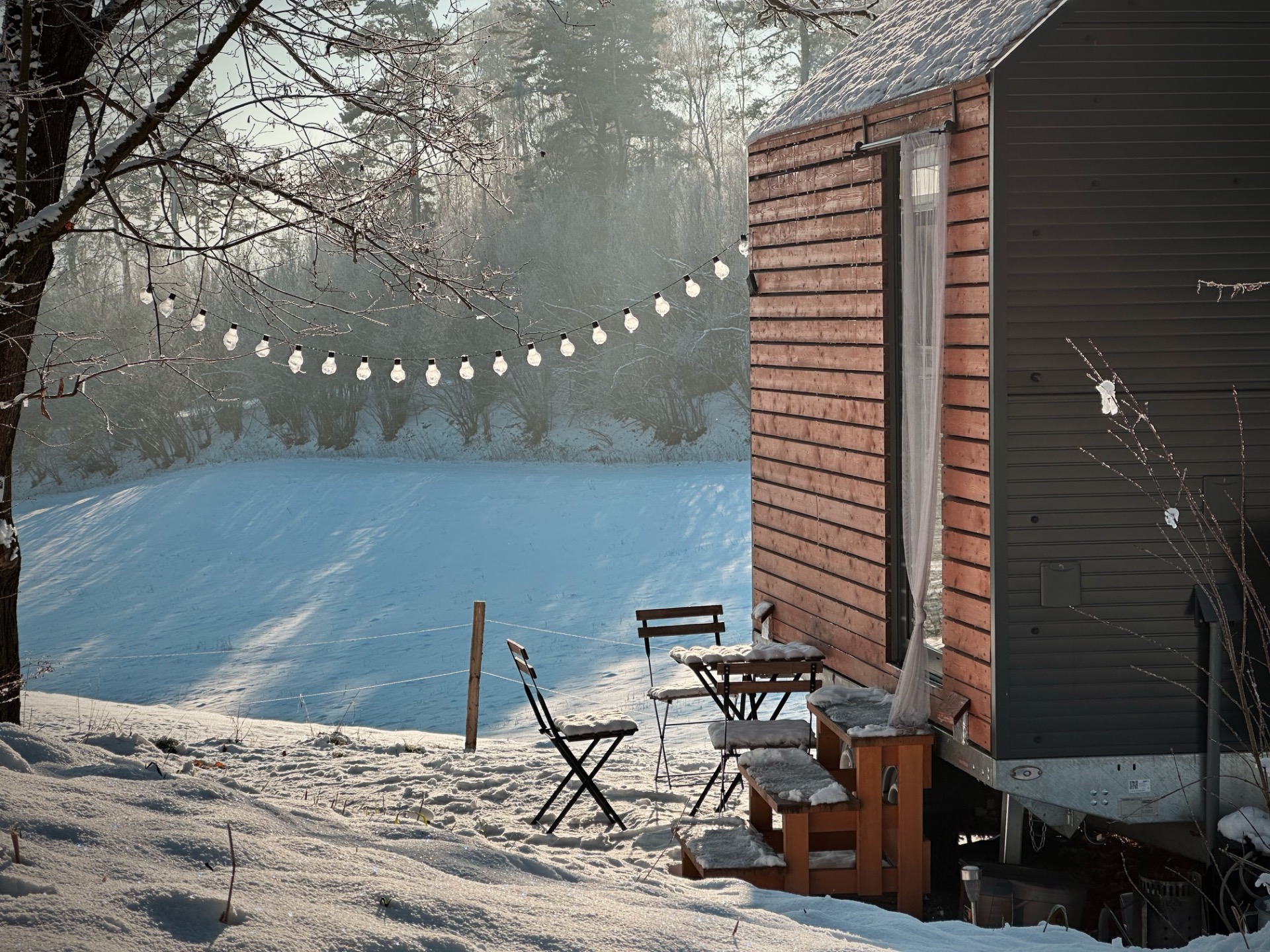 Náš tiny house je navržen tak, aby spojoval pohodlí domova s kouzlem života v přírodě. Uvnitř najdete promyšlený prostor s moderním designem, venku pak klid lesa, rozsáhlou louku a dřevěný koupací sud.